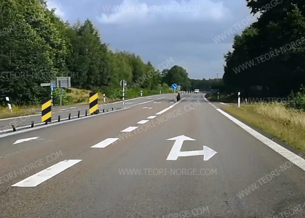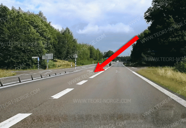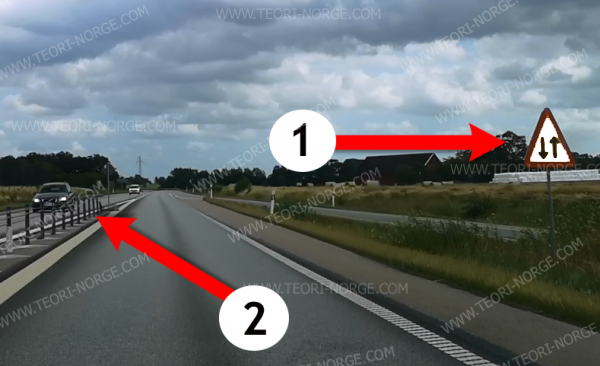 لاحظ عند الاسهم الحمراء عند انتهاء الحاجز بوسط الطريق يتم تنبيهك بشاخصة انك ستقابل حركة مرور مقابلة