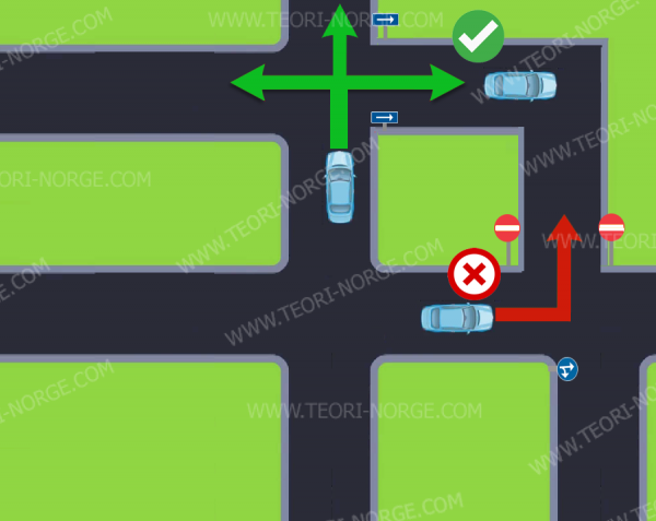 لاحظ ان السيارة عند السهم الأخضر يسمح لها بالدخول في الطريق او الذهاب للأمام او لليسار