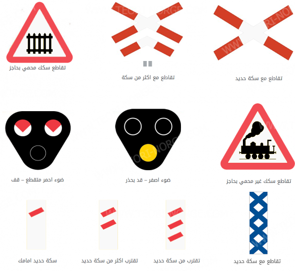 عند اقترابك من تقاطع او سكة قطار سوف تشاهد هذه الشواخص تنبهك بذلك