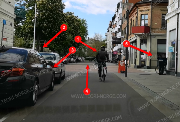 - سائق الدراجة يمكن ان ينعطف امامك لليسار او يستمر للأمام